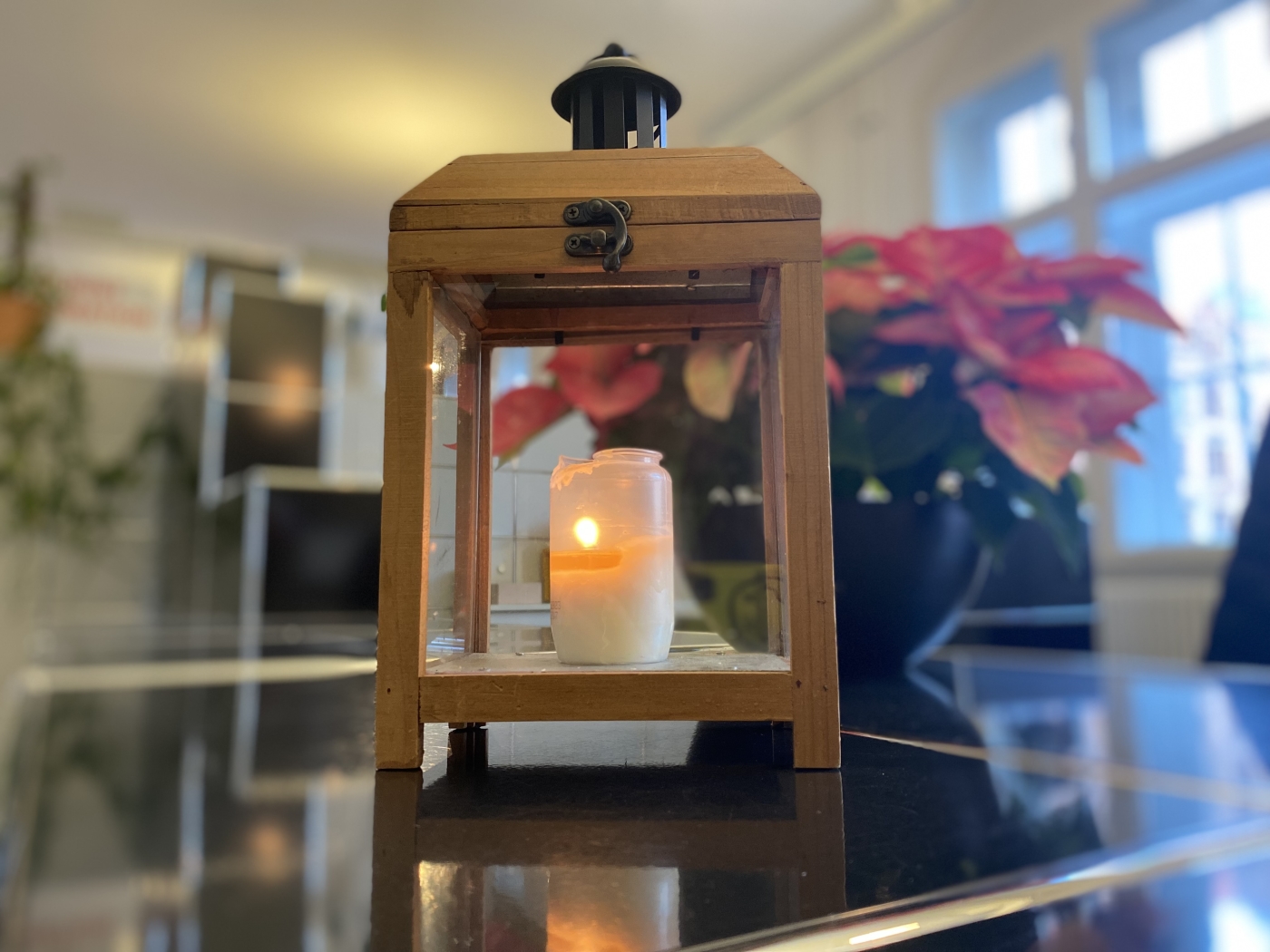 Friedenslicht aus Betlehem an der Infotheke im Rathaus - LHS