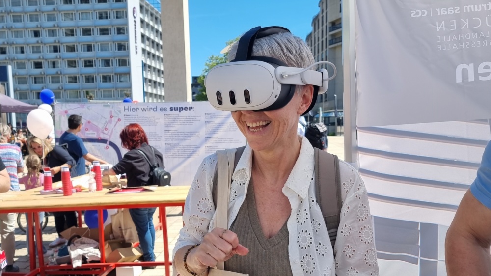 • Virtual-Reality-Brille um sich auf Entdeckungstour zu begeben. Wer die Brille aufsetzt, kann in eine 360 Grad 3D-Projektion eintauchen, die zeigt, wie der Erweiterungsneubau der Congresshalle künftig aussehen soll – Räume, Aufbau und Vorplatz werden dabei erlebbar.